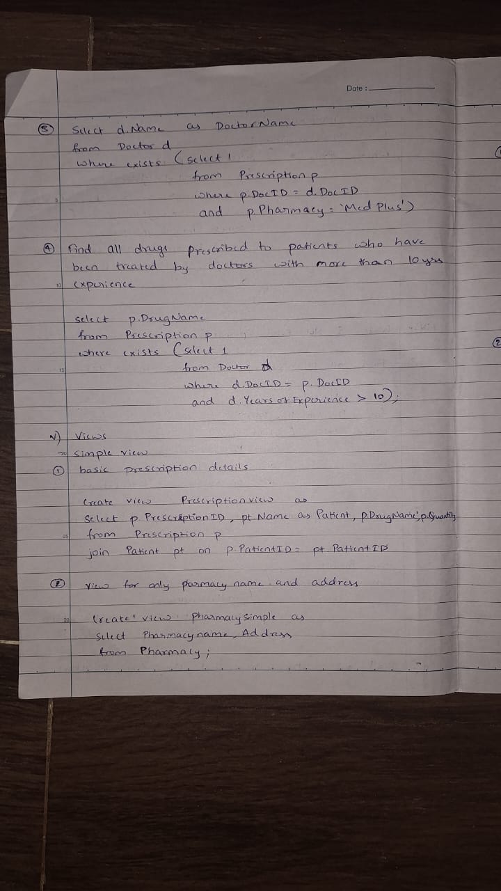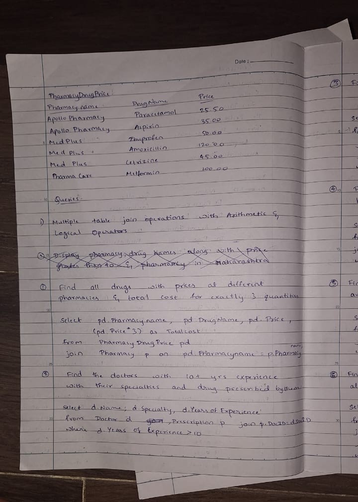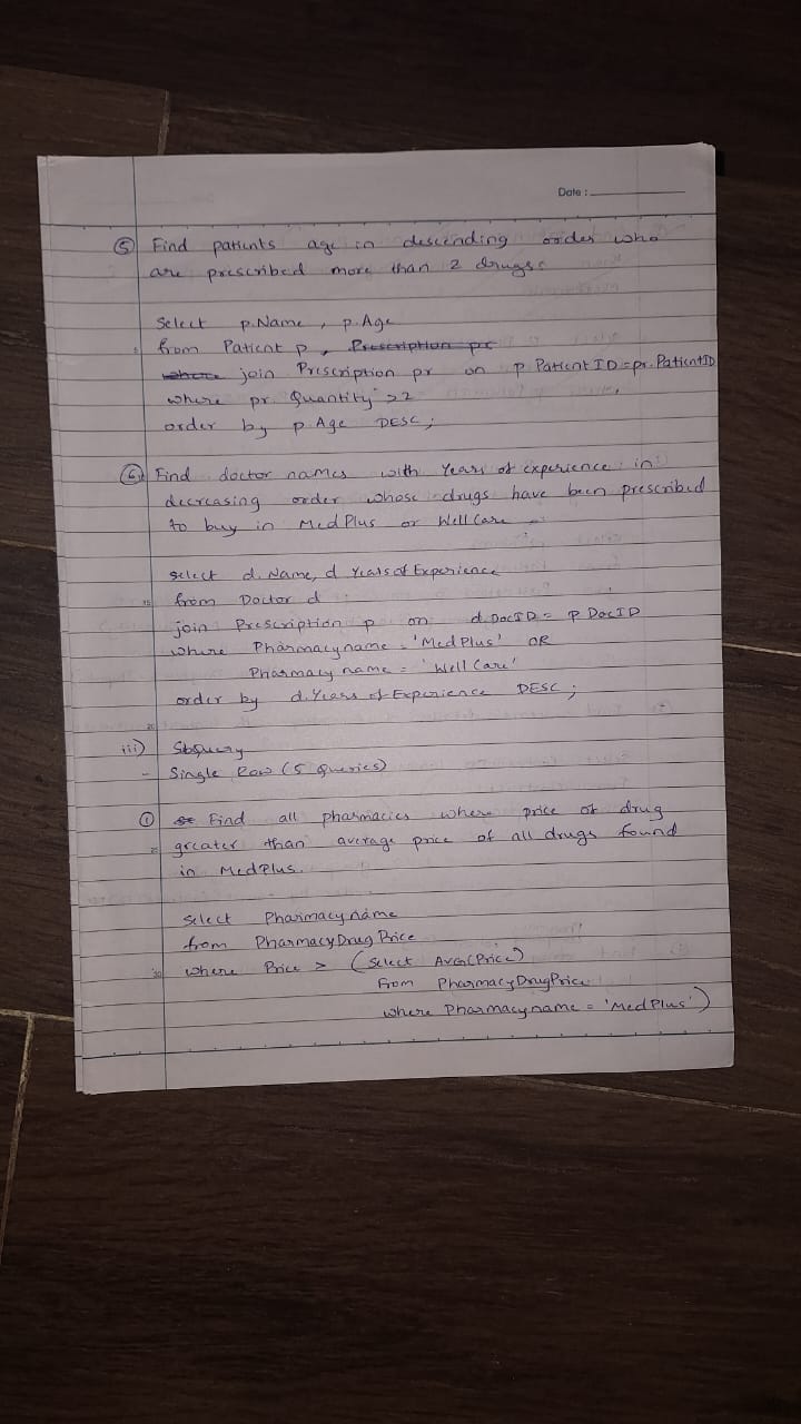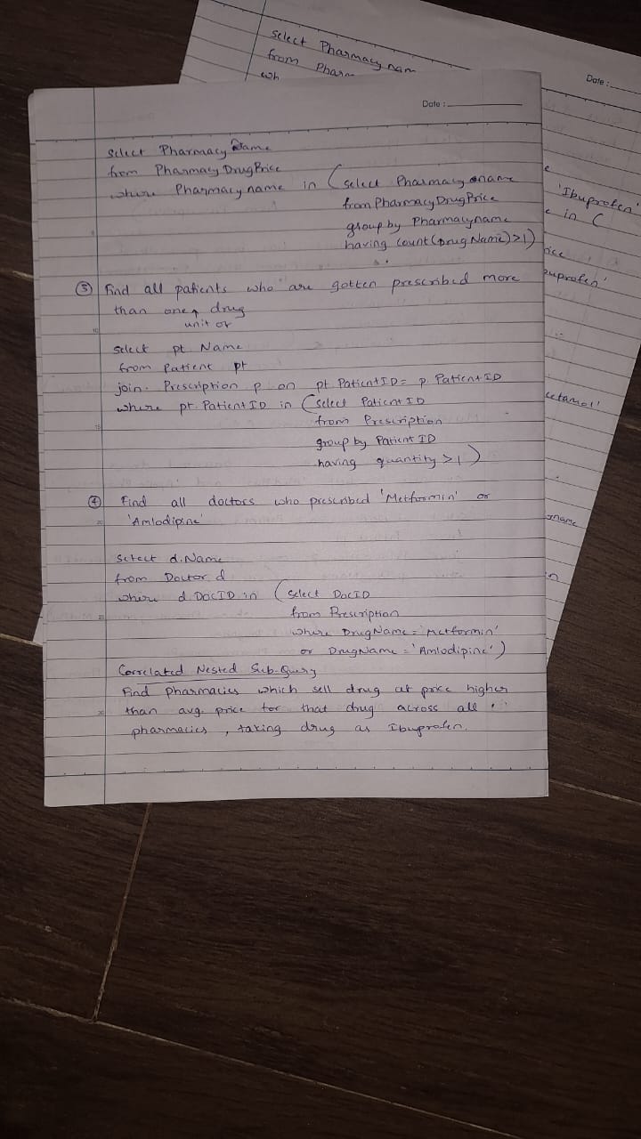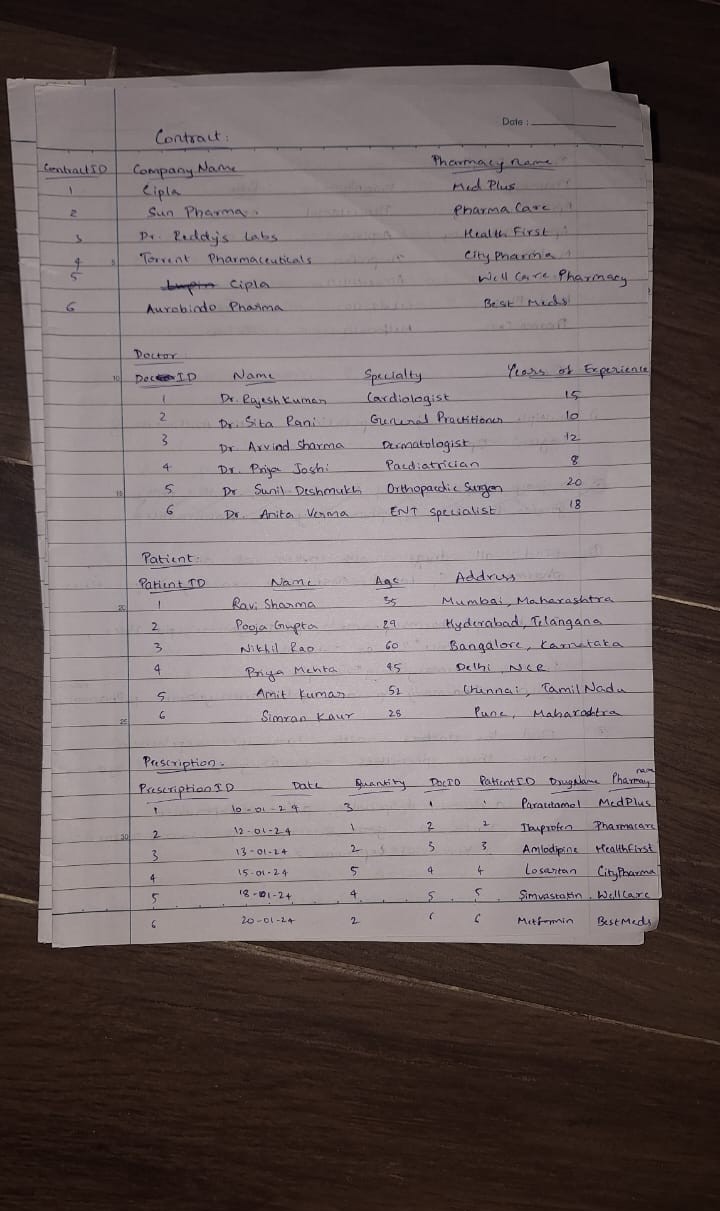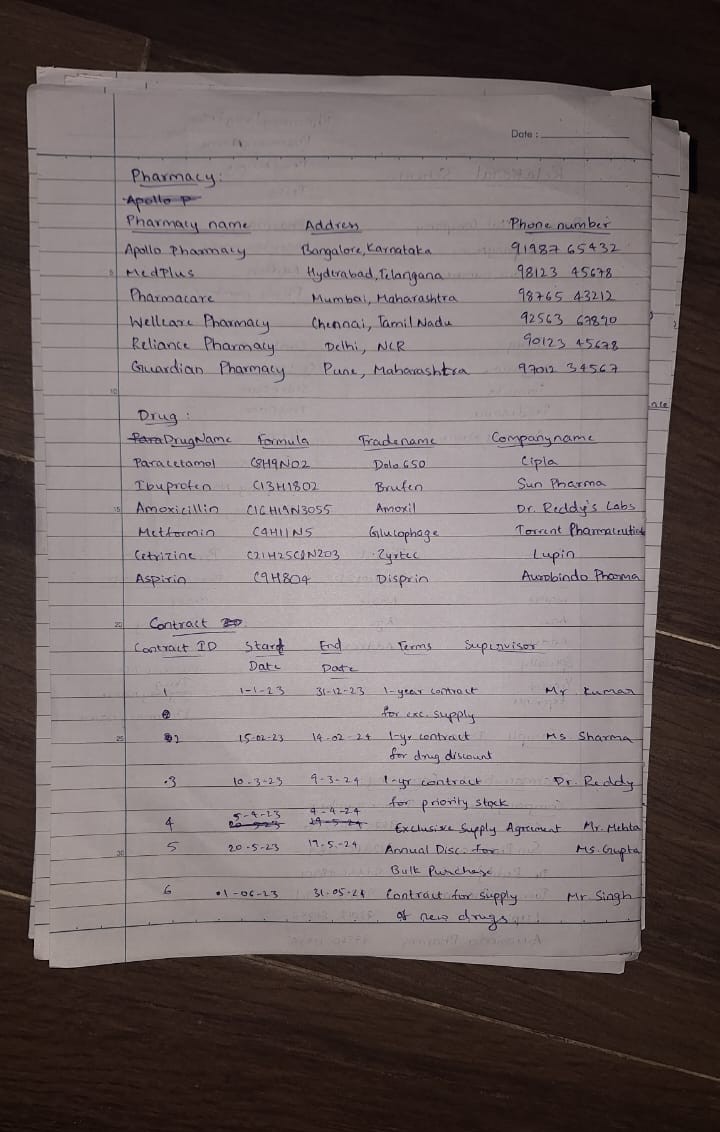 To design the ER diagram, I utilized the online Canva tool. It provided an intuitive platform to identify entities and their attributes after analyzing the given pharmacy database. For converting the ER model into a relational schema, Dbdiagram.io proved to be a highly effective tool. It simplified the process by generating tables and attributes with minimal effort. Finally, I executed the queries using Oracle SQL Developer, ensuring practical implementation and testing.